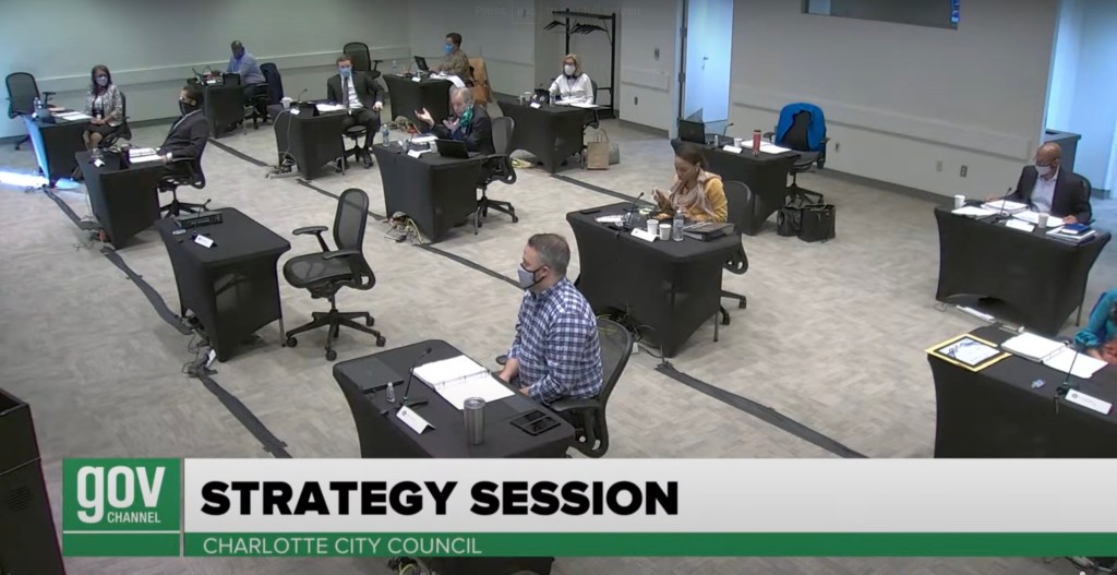 The setting was a day-long meeting at which the city’s elected officials and top administrators discussed a wide range of issues, including the city budget, COVID relief, potential changes to the city’s form of government, and reform of the Charlotte-Mecklenburg Police Department.