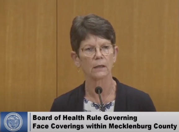 Harris, who holds an undergraduate degree in nursing and a master’s degree in public health and who, over her thirty-year career, previously worked as health director in Wake and Bumcombe counties, explained to commissioners the rationale for recommending a new mask requirement in Mecklenburg County.