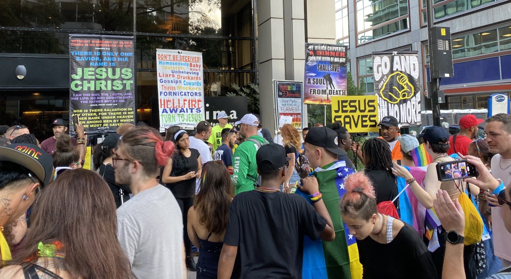 Meanwhile, the businesses who pandered to us by funding the celebration — Truist, Wells Fargo, Bank of America, PNC, and Duke Energy, to name just a few — regularly and generously contribute to anti-queer politicians. Today’s gay rights movement suffers not only from commodification, but hypocrisy: Our political forebears drew on raw, uncompromising rage — “We’re here! We’re queer! Get used to it!” — while we hedge our bets, look the other way, and cash our corporate benefactors’ checks. (This moral equivocation separates Charlotte Pride from the religious hecklers who condemn us: The zealots are loathsome, but honest.)