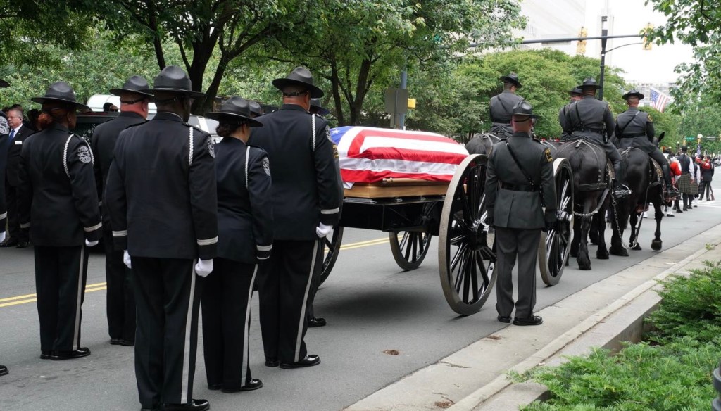 When we hold state funerals for cops but not garbage men or roofers or truck drivers — the “unskilled” detritus of a cruel economy that encourages us to treat manual laborers as disposable — it isn’t because law enforcement is a deadlier job; it’s because law enforcement is engaged in a political project founded on the repeated retelling of an aggrandizing folk tale that shapes fear into cultural and political power: Beleaguered officers, ever and always pinned down on all sides by dangerous, violent criminals, are sacrificing themselves to keep us safe. With the telling of this story, passion replaces virtue as the essence of heroism; democratic habits of mind and character are degraded amidst the worship of official violence and its perpetrators; and ostentatious public farewells exploit real loss to create a sense of grandeur rooted in policing’s preferred narrative of dangerousness, the dissemination and promotion of which tends to discourage or blunt criticism of policing while amplifying the encomiums of law enforcement’s supporters and apologists who seek to transform suffering into political clout by invoking inchoate impressions of a thin blue line.
